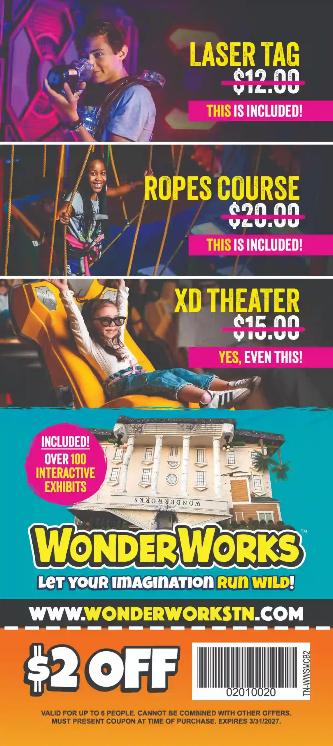 This coupon is valid for up to 6 people. Cannot be combined with any other offers. Must present coupon at time of purchase.